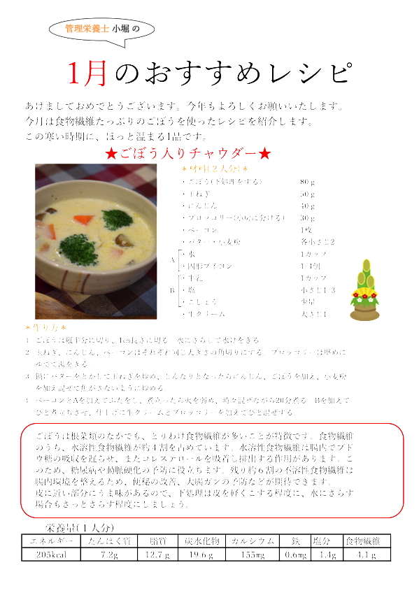 管理栄養士小堀の今月のおすすめレシピ ![]() (2026.1.1)