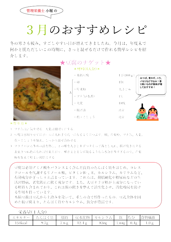 管理栄養士小堀の今月のおすすめレシピ ![]() (2026.3.1)