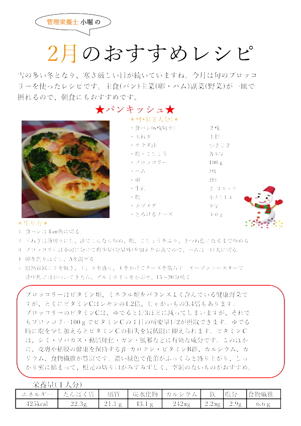 管理栄養士小堀の今月のおすすめレシピ ![]() (2026.2.1)